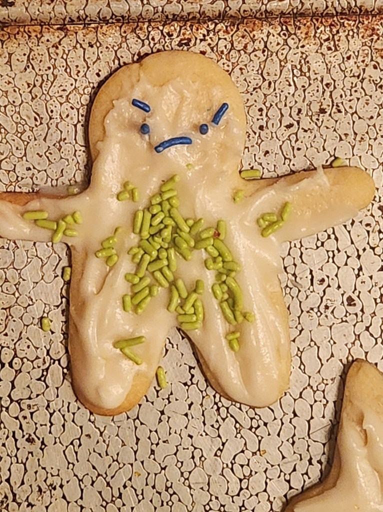With only a couple of days to go until Christmas, I got the dough out of the freezer and tried again. No obligation. Just making Christmas cookies for the hell of it, the kids all taking part in their own way. It’s not going to make it on Instagram. My oldest is mostly too cool, hanging to the side, making snarky comments (where does she get that?), and the youngest getting banned to the Nintendo because his shenanigans are funny and all, but we got a lot of cookies to get through. Thank god my middle child takes the cutting out of snowmen and angels seriously!