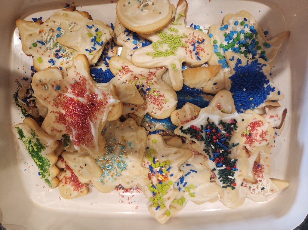 But cookie-making helps me maintain sanity through it all, and I have the whole process down. Shop; come back and make dough. Put it in the fridge to chill while I attend parties and concerts. Then I can decompress while I cut them out and bake them. They can sit again while I attend to more obligations. Eventually, I frost them and set the kids to decorating them because, and I’m serious about this, I don’t decorate.