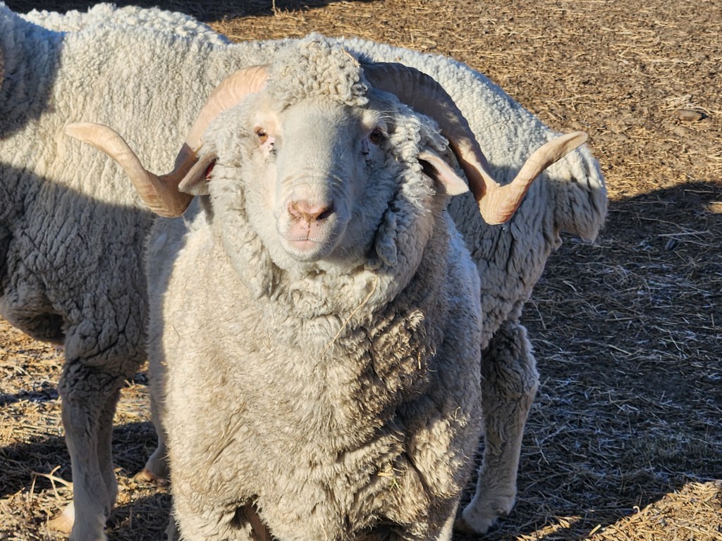 This girl finally getting some sheep time. She got the brand on her coat last shearing.